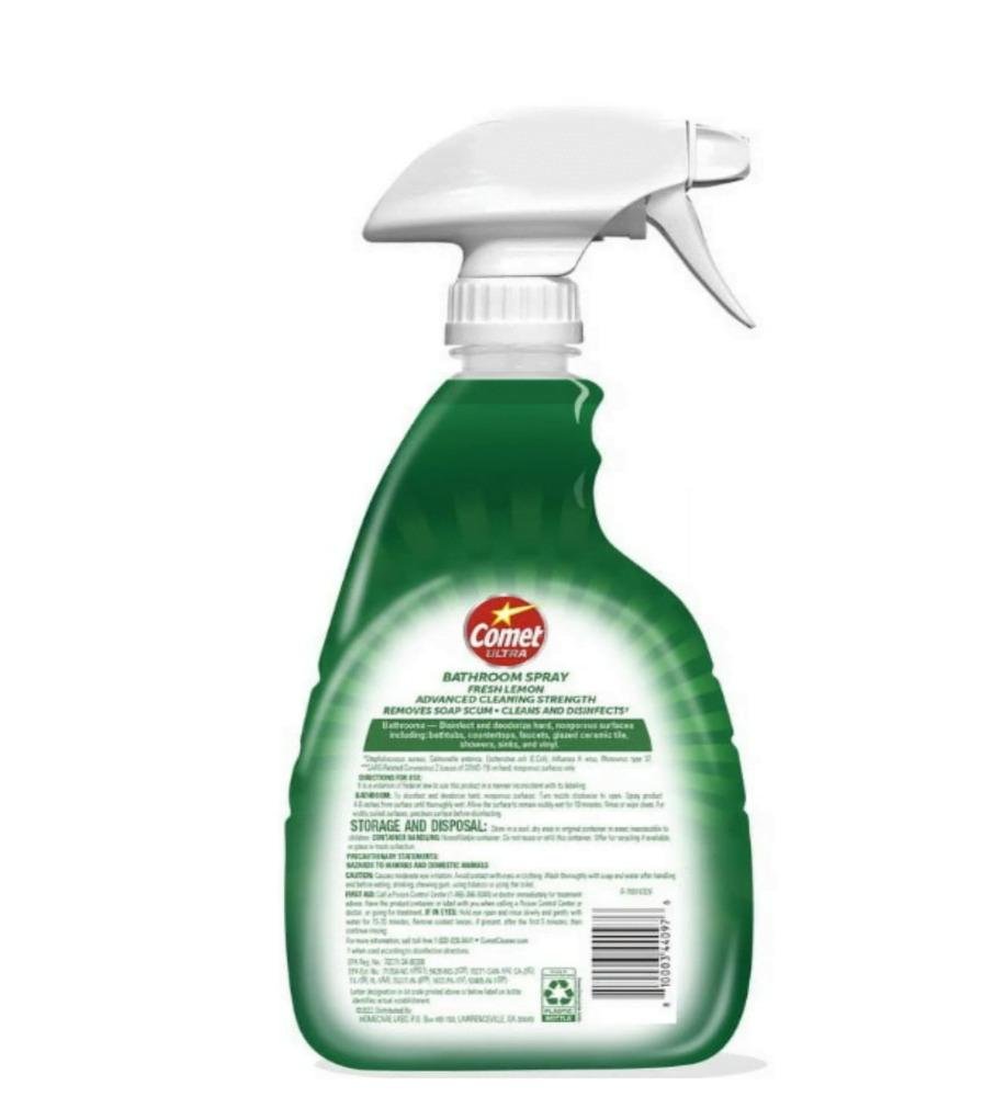 Comet bathroom cleaner effective, with one mentioning it removes soap scum and iron stains without scrubbing. The product makes surfaces shiny, and one customer notes it works particularly well on soap buildup. The scent receives mixed reactions, with some appreciating the fresh smell while others find it too strong. Several customers report issues with leakage, with chemicals seeping into their garages.